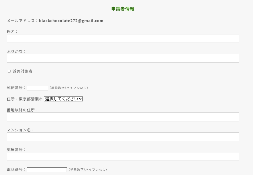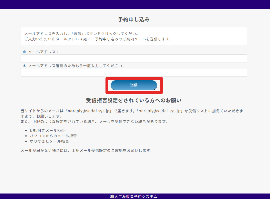 メールアドレスを入力して送信。当然ですがここでまだ申し込みは終わっていません。