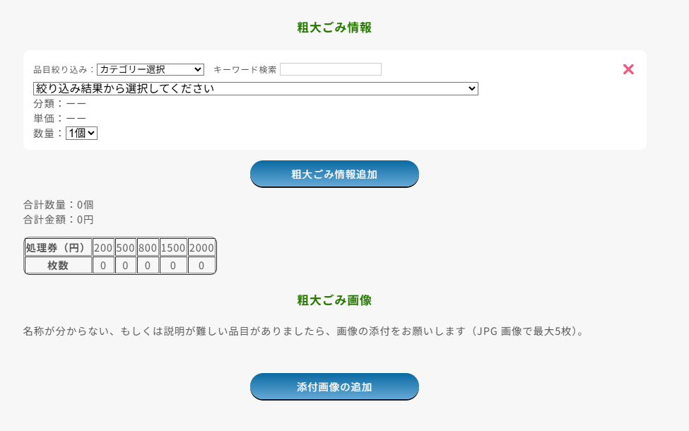 ここがまたわかりにくいですが、「粗大ごみ情報追加」ボタンを押すともう一個別の粗大ごみを登録することができます。